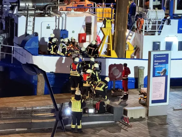 Komplizierte Rettung: Feuerwehr birgt Besatzungsmitglied aus engem Schiff
