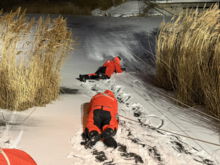 * Mit Schlauchboot und Eisschlitten – für größere Entfernungen oder besonders dünnes Eis.